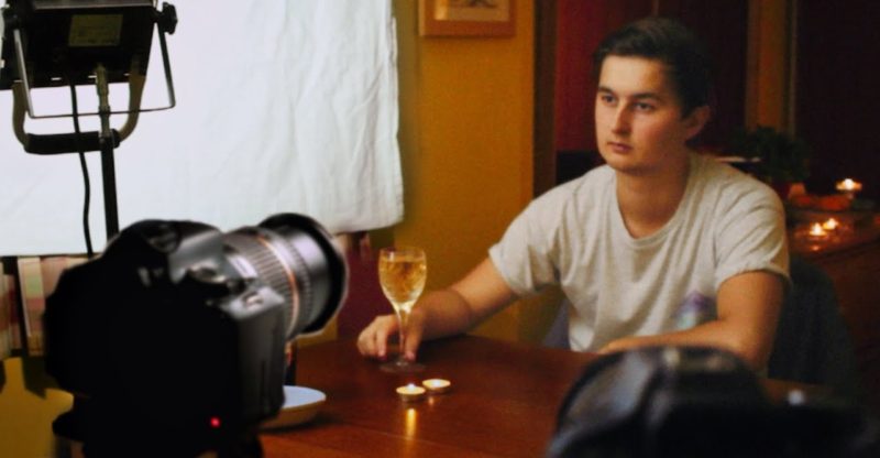 So I definitely think this is looking better than what we started with, but I still think the background is a bit too dark. We rarely see shadows like that indoors. So I'm using the kitchen roll to make another thing we can bounce light off. After bringing in that lamp, it now just adds a touch of light that sort of looks like it's coming from the candles. But it's not too overpowering. Now there is a bit of a problem here. That light is reflecting off of this picture, which could distract the audience. But, if we change the angle of the picture, the reflection disappears. So lets grab some Blu-Tack, and use it to hold the picture in that position. And there we go. We've now got our main, soft key light, some candles for effect, and a bit of a background light to even things out. What I'm trying to show here is that lighting involves all the same principles, whether you're bouncing it off a bed sheet, or a professional Scrim Jim.